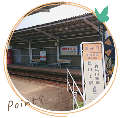 伊予鉄環状線「高砂町」駅から徒歩9分「木屋町」駅から徒歩12分、松山市駅から車で12分。通院しやすい立地で、地域の皆さまの健康を支えるかかりつけ医を目指しています。