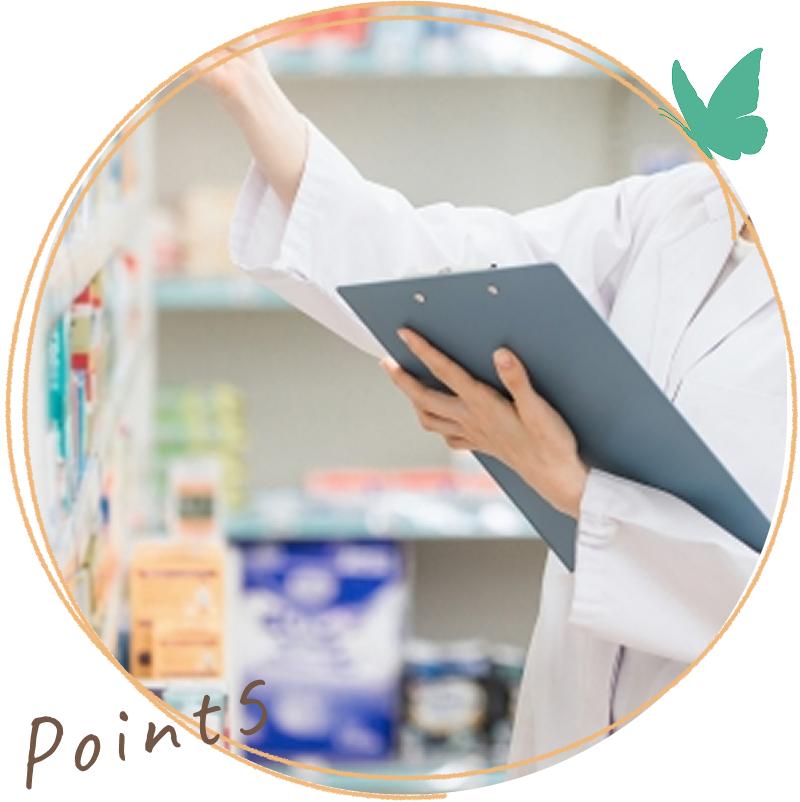 当院には薬剤師が在籍しており、処方された薬を院内でお渡しする「院内処方」を行っています。服薬の相談や副作用の確認なども、お気軽にご相談ください。